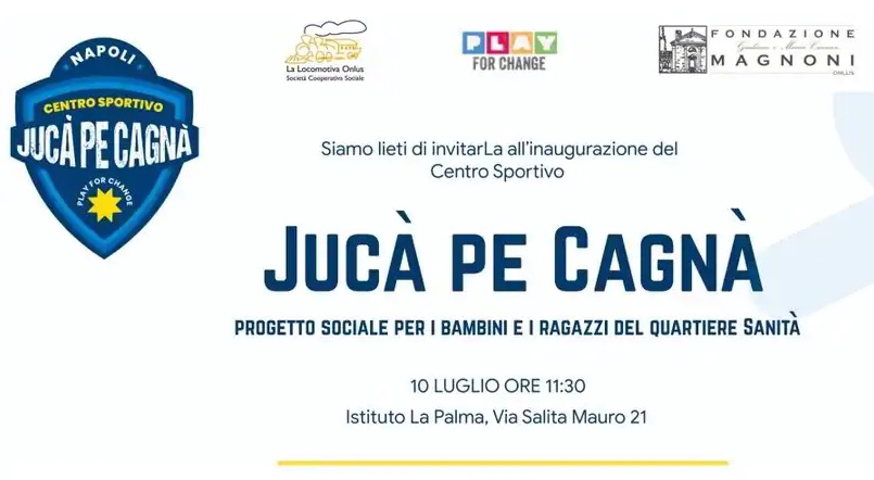 In occasione delle Universiadi, l’associazione Play for Change ha inaugurato questa mattina, al quartiere sanità di Napoli, il nuovo centro sportivo “Jucà pe cagnà”. Gli spazi dell’istituto la Palma sono stati riqualificati e attraverso un fitto programma di attività sportive verranno coinvolti 150 giovani tra i 6 e i 14 anni, con un’attenzione particolare per i bambini con disabilità.