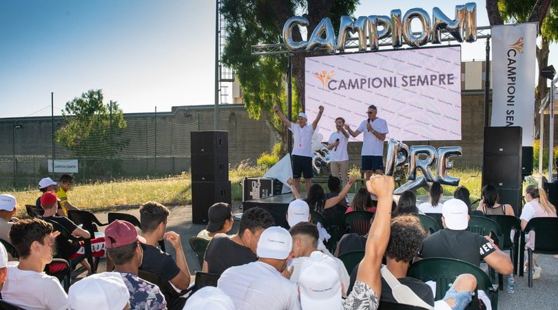 Campioni sempre è un’iniziativa promossa da Sport3000, associazione senza scopo di lucro che opera nel mondo degli eventi sportivi, con il contributo della Presidenza del Consiglio dei Ministri, che mira a coinvolgere giovani detenuti in attività di animazione sportiva, con l’obiettivo di sostenere, insieme alle direzioni penitenziarie, un processo di recupero e di rieducazione. Martedì 25 giugno, all’interno dell’Istituto Penitenziario Minorile di Casal del Marmo di Roma, Ciccio Graziani e Andrea, hanno condotto prima un allenamento e quindi organizzato un torneo insieme ai giovani detenuti, che hanno anche avuto la possibilità di iniziare un percorso di avvicinamento al ballo e danze popolari.