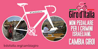 Oltre 120 gruppi per i diritti umani promuovono la campagna che invita il Giro d’Italia a spostare la partenza della gara da Israele a causa delle violazioni dei diritti umani dei palestinesi. In Italia hanno firmato oltre 40 organizzazioni. Sabato e domenica biciclettate e cicloraduni. La presentazione ufficiale della corsa è prevista il 29 novembre a Milano.