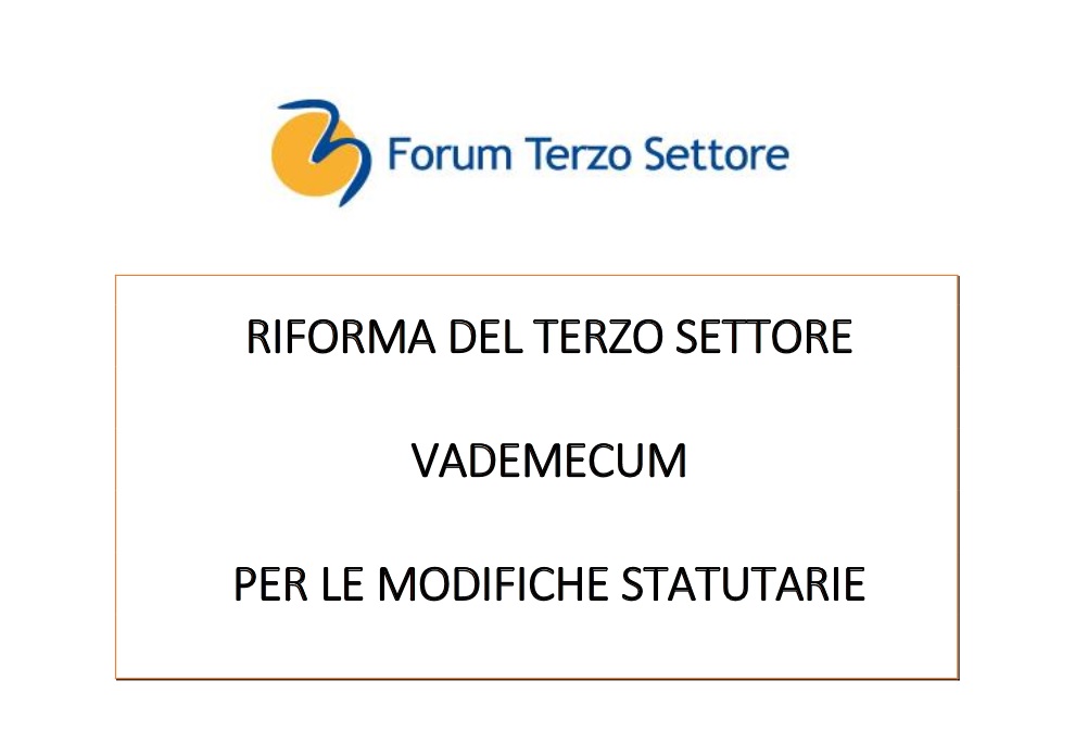 È online il “Vademecum per le modifiche statutarie”. Realizzato dal Tavolo tecnico legislativo del Forum Nazionale del Terzo Settore, contiene una serie di indicazioni e suggerimenti per orientarsi tra le clausole da modificare. Una guida utile a supporto del lavoro che ogni ente è chiamato a fare.
