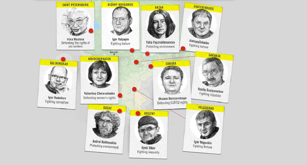 La campagna “Squadra Coraggio” si occuperà di 11 difensori dei diritti umani provenienti da ciascuna delle regioni della Russia in cui si svolgeranno le partite dei mondiali di calcio, sensibilizzando l’opinione pubblica sull’importanza del loro lavoro e promuovendo l’invio di messaggi di solidarietà per far sapere loro che non sono soli. Ecco la formazione della “Squadra Coraggio”: Oyub Titiev (Grozny), direttore dell’ufficio dell’Ong Memorial in Cecenia, in carcere dal gennaio 2018 per accuse artefatte; Andrei Rodumakha (Sochi), difensore dei diritti dell’ambiente, aggredito brutalmente nel 2017; Irina Maslova (San Pietroburgo), fondatrice di un movimento per difendere i diritti delle lavoratrici del sesso; Igor Nagavkin (Volgograd), impegnato nella lotta alla tortura e alla corruzione fino a quando non è stato arrestato nell’ottobre 2016; Valentina Cherevatenko (Rostov sul Don), attivista per i diritti delle donne; Igor Rudnikov (Kaliningrad), giornalista indipendente, impegnato in inchieste sulla corruzione fino a quando non è stato arbitrariamente arrestato nel 2017; Oksana Berezovskaya (Samara), direttrice di un’organizzazione per i diritti delle persone Lgbti; Igor Kalyapin (Nizhny Novgorod), fondatore del Comitato contro la tortura; Yulia Fayzrakhmanova (Kazan), difensora dei diritti dell’ambiente; Aleksei Sokolov (Yekaterinburg), attivista contro la tortura e altre violazioni dei diritti umani nel sistema penitenziario; Vasiliy Guslyannikov (Saransk), fondatore dell’Ong Centro per i diritti umani della Repubblica di Mordovia. Molti di questi difensori dei diritti umani hanno subito minacce, intimidazioni, aggressioni fisiche, diffamazioni e in alcuni casi arresti arbitrari per aver portato avanti il loro fondamentale lavoro.