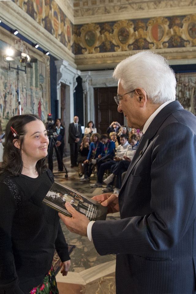 La stanza si riempie di silenzio quando parla Sergio Mattarella. Sembra che le parole gli escano dal cuore e per questo rendano più calda la sua voce; è lui a ringraziare ragazze e ragazzi con le loro famiglie per il bellissimo esempio di grande umanità che danno al mondo intero, loro che rappresentano una ricchezza inesauribile di valori. Certo, l’impegno a lavorare insieme per una completa integrazione deve proseguire fino ad abbattere i pregiudizi e le diffidenze che rendono ancora piena di ostacoli la vita sociale delle persone con disabilità. È stato fatto tanto, tanto resta ancora da fare. Ma questa è la casa di tutti, penso, quindi insieme, come una grande famiglia, riusciremo a migliorare.